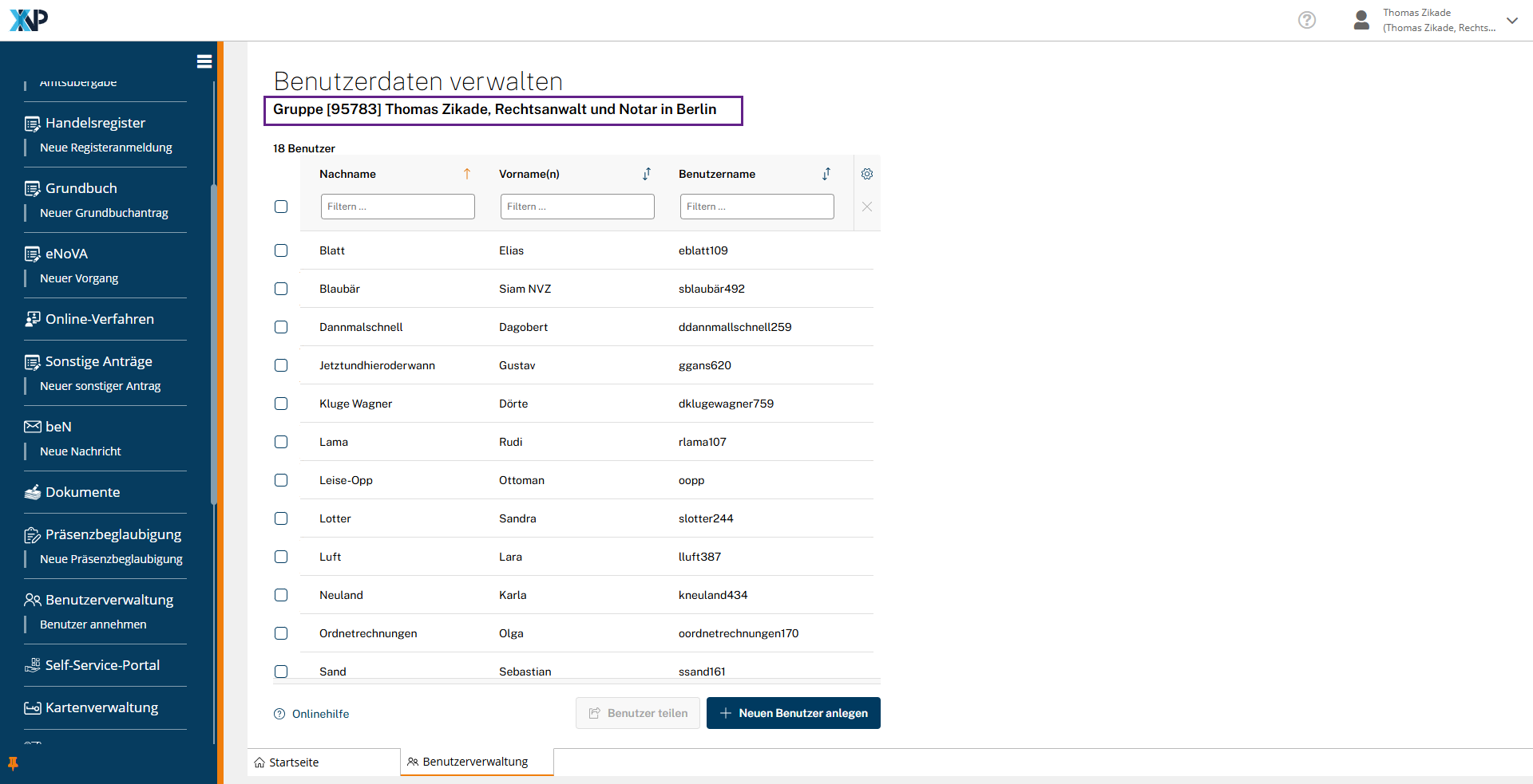 Je nach Benutzertyp und Berechtigungen Ihres eigenen Benutzers können Sie im Rahmen dieser Verwaltung neue Benutzer anlegen oder bestehende bearbeiten.