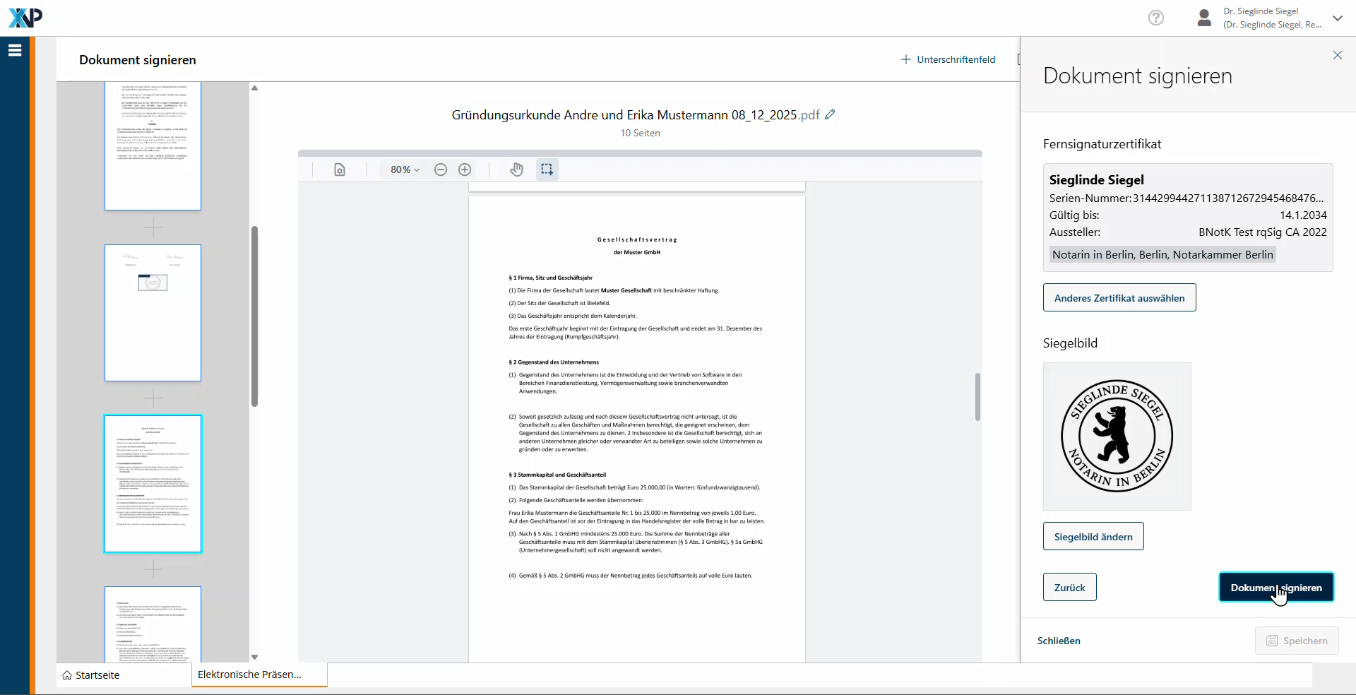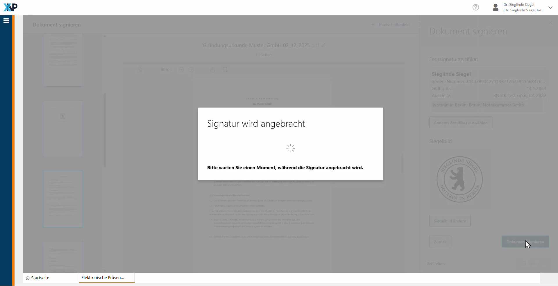 Eine Anleitung zum Hochladen eines Siegelbilds finden Sie unter Einrichten der eBeurkundung.