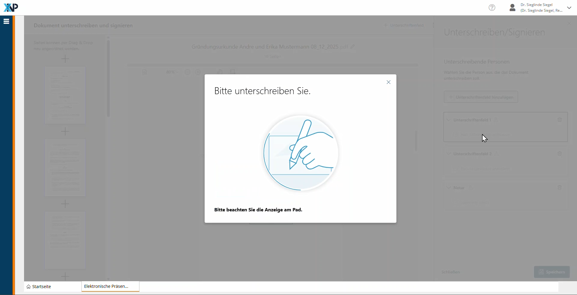 Bei Aufforderung zur Unterzeichnung durch den Bürger wird die Notarin oder der Notar darauf hingewiesen, dass mehrere Pads angeschlossen sind. Hier kann dann das entsprechende Unterschriften-Pad ausgewählt werden.