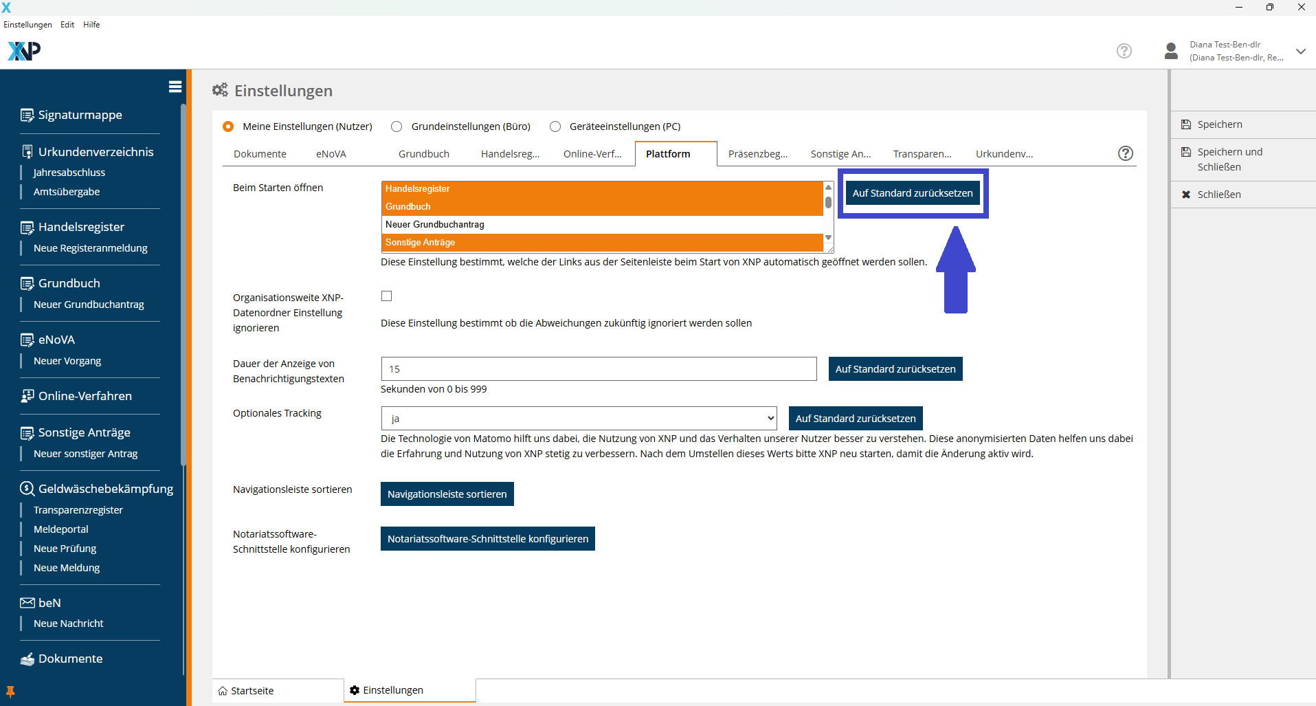 Das automatische Öffnen beim Start ist pro Nutzer und pro Organisation (Amtstätigkeit / Notarkammer) individuell festlegbar, d.h. für einen Nutzer in mehreren Amtstätigkeiten auch unterschiedlich möglich.