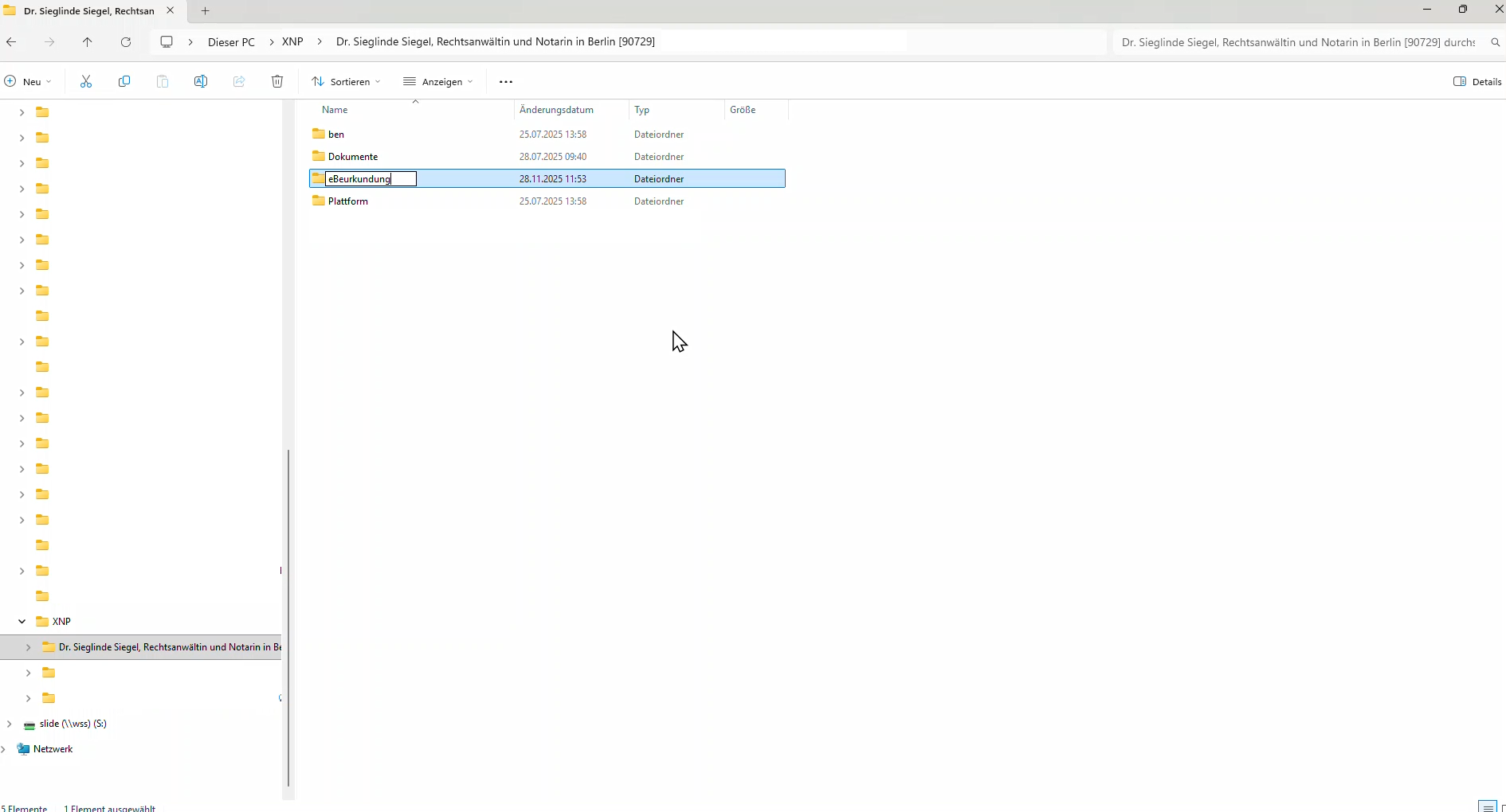XNP-Datenordner → Ordner der Amtstätigkeit → eBeurkundung
