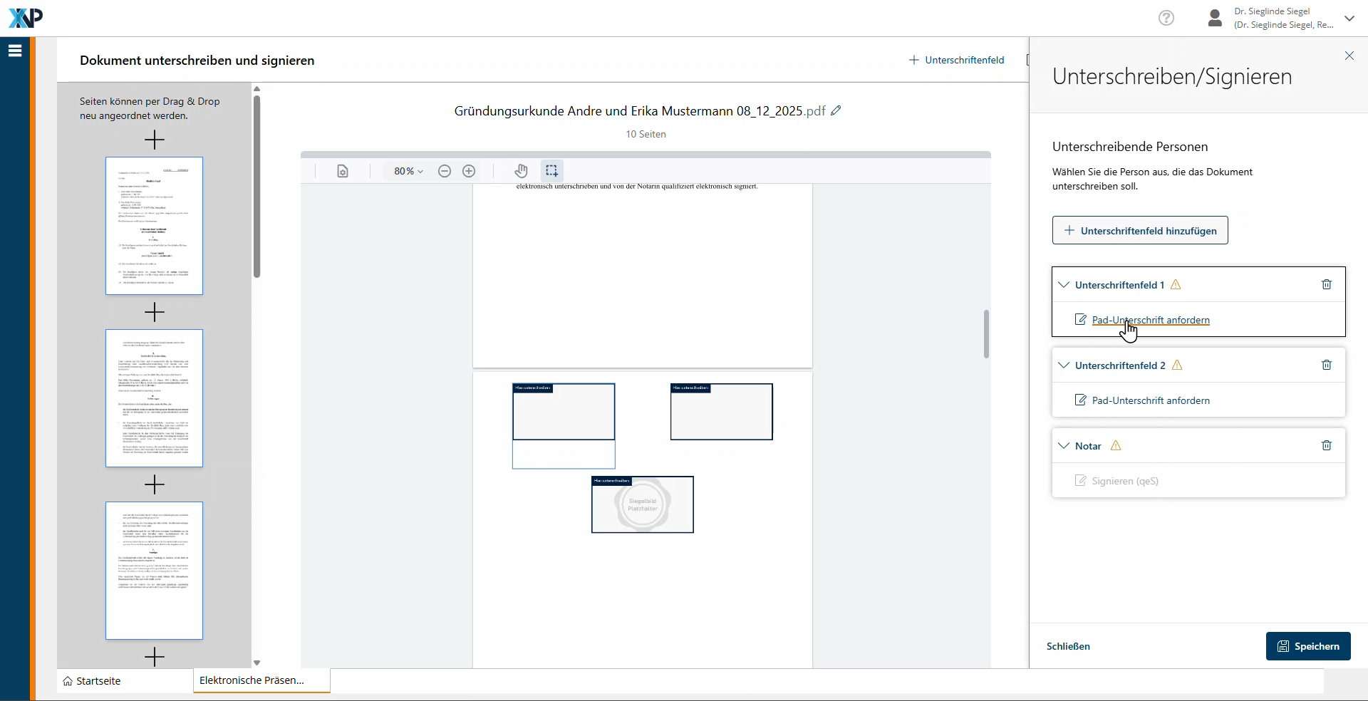 Um die Unterschriften-Pads besser zuordnen zu können, können diese individuell bezeichnet werden (dazu sogleich).