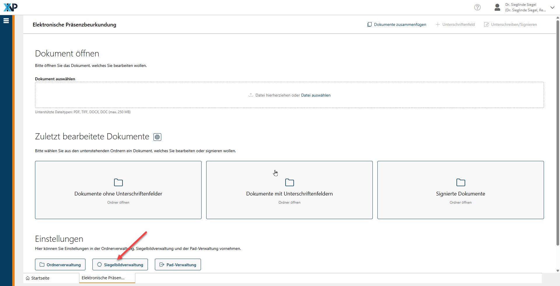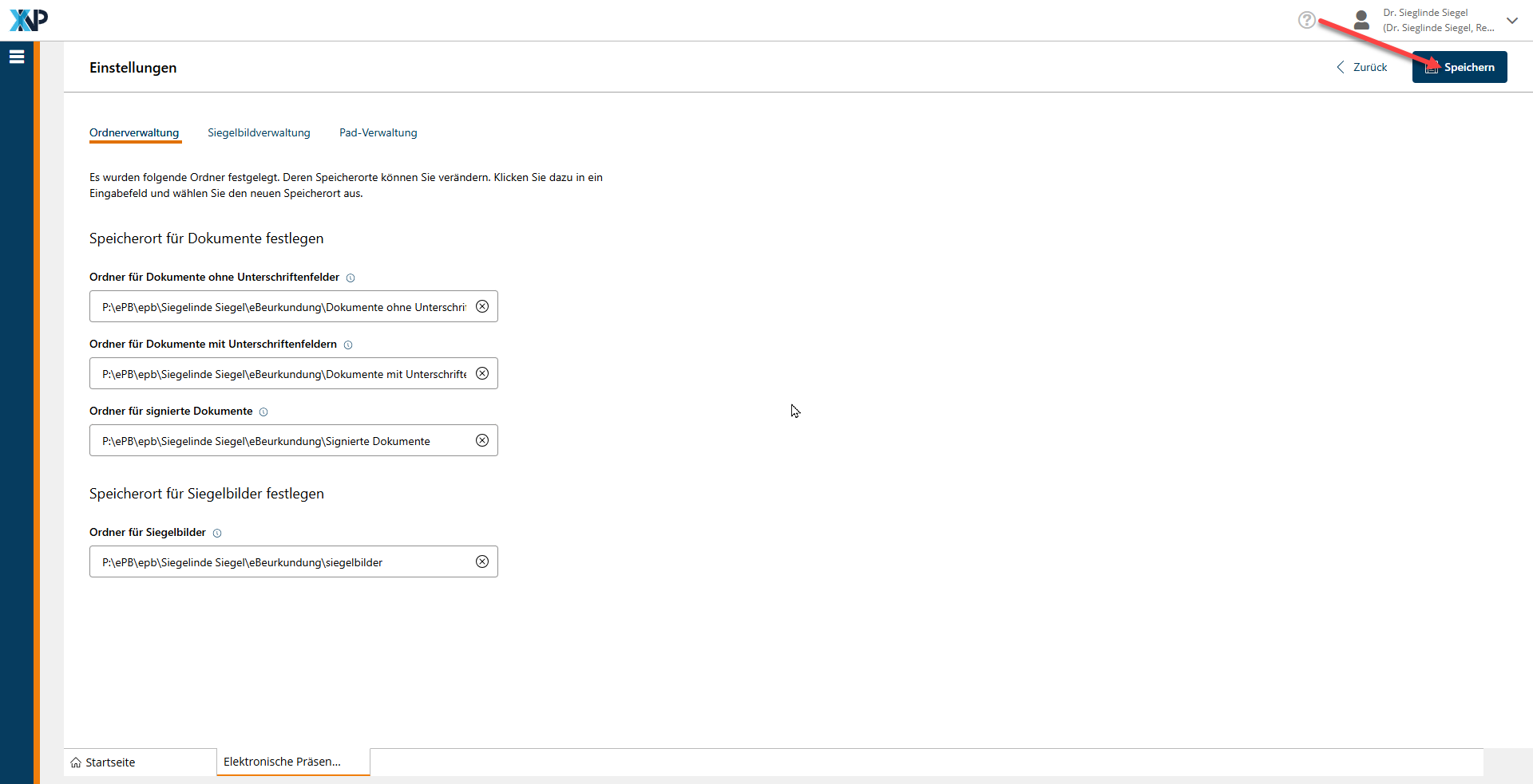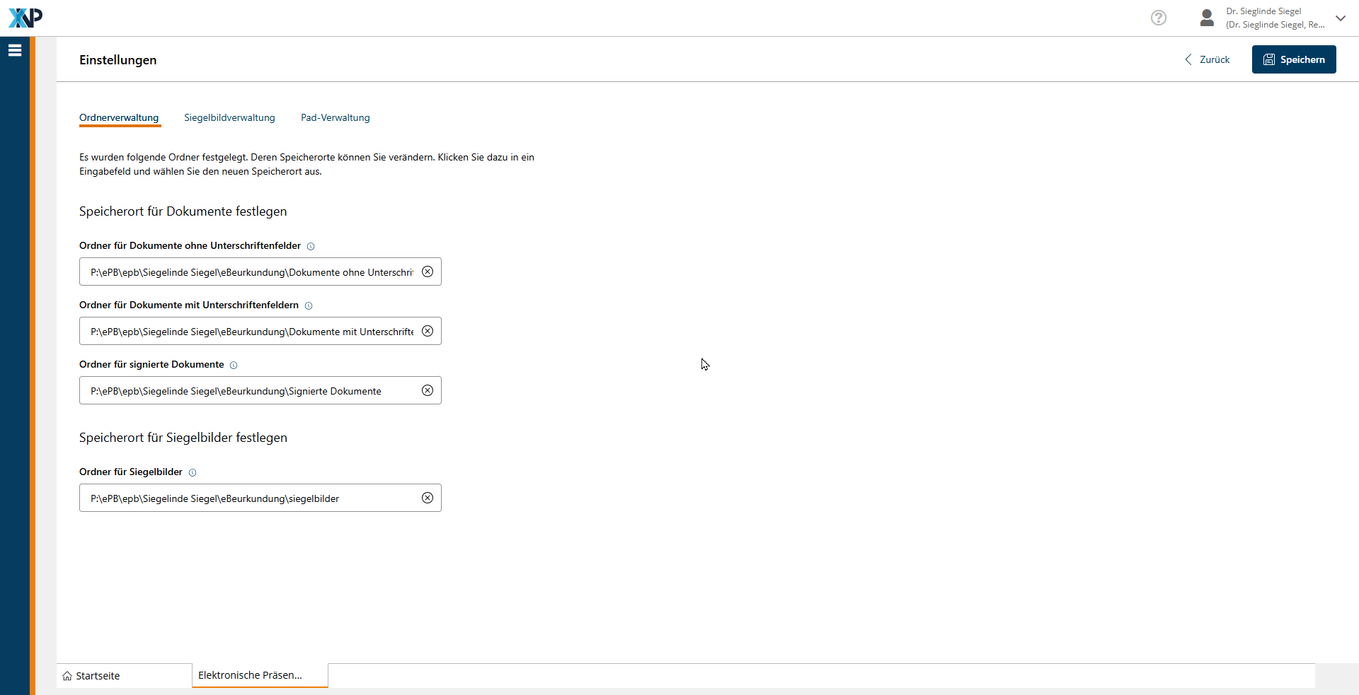 | Ordnerverwaltung | Ermöglicht es, Ordner bzw. Speicherorte für Dokumente und Siegelbilder festzulegen. |