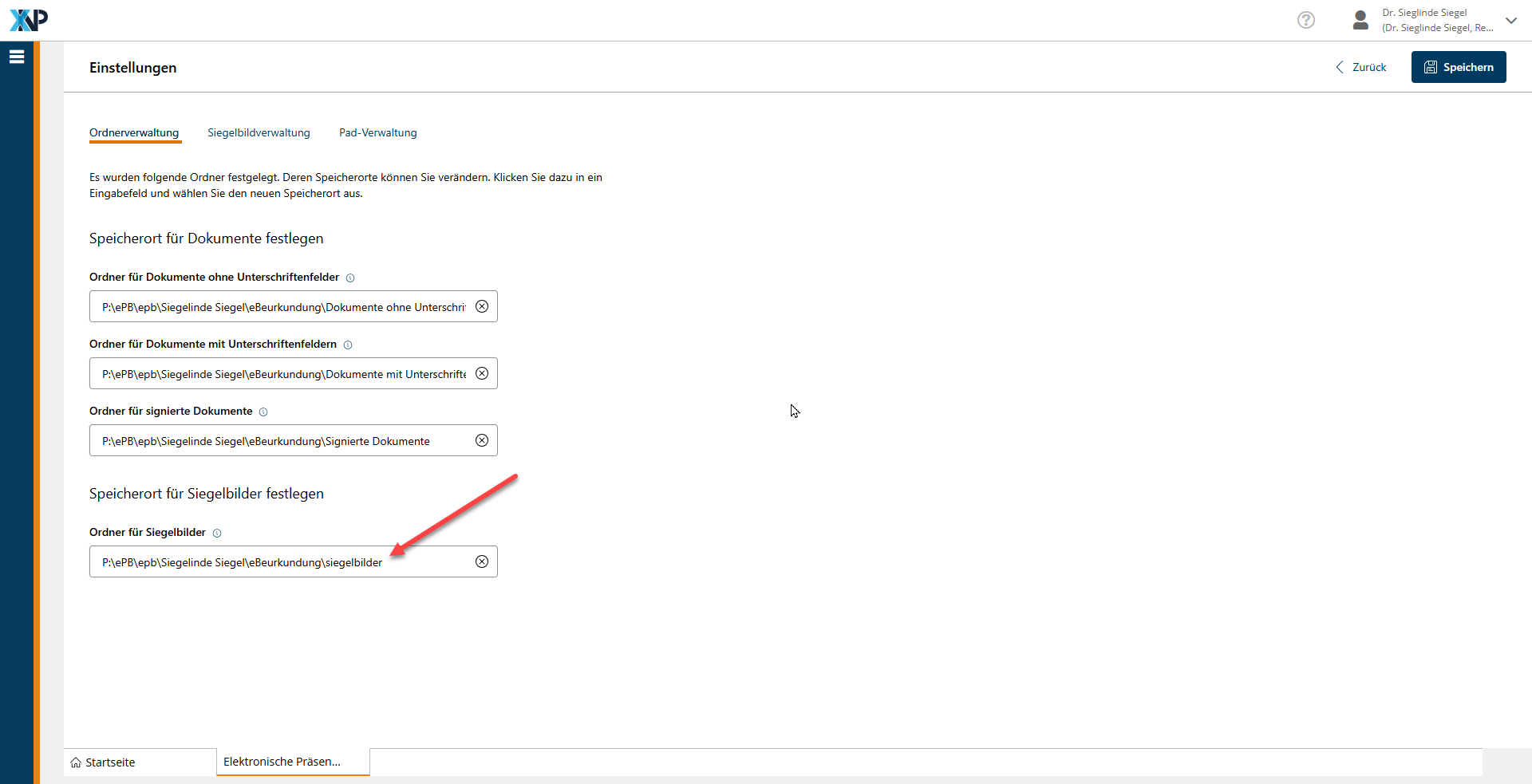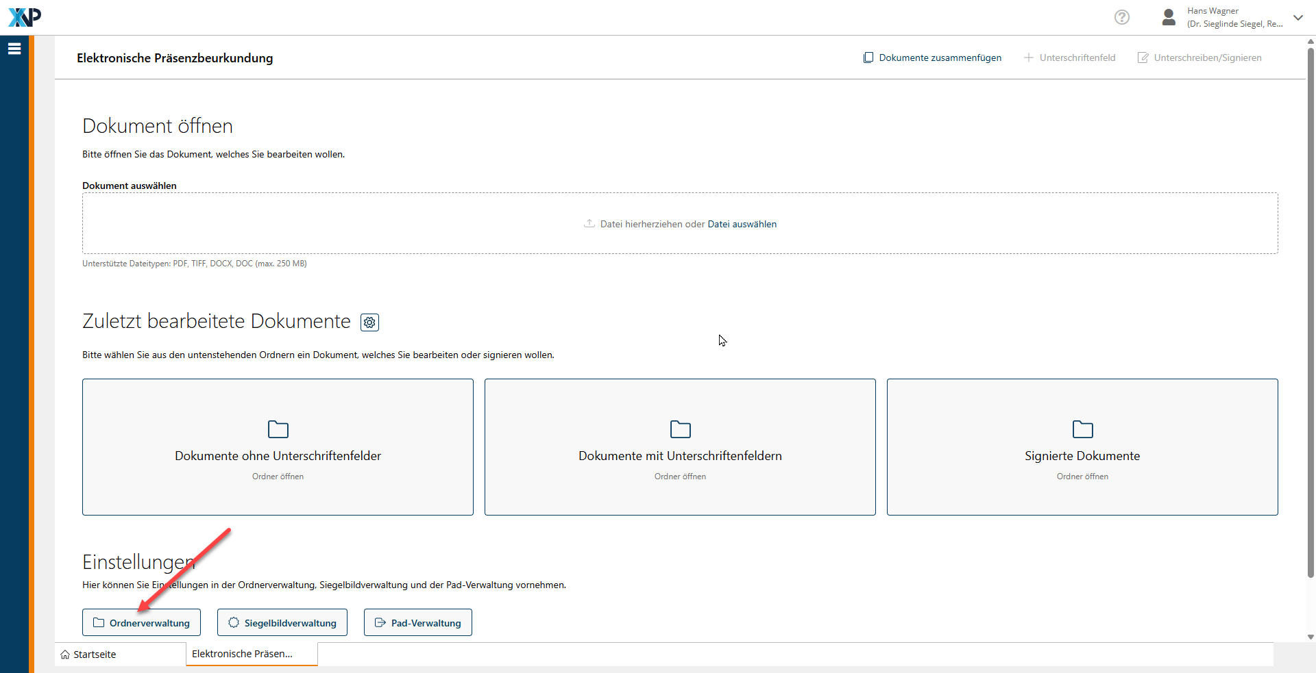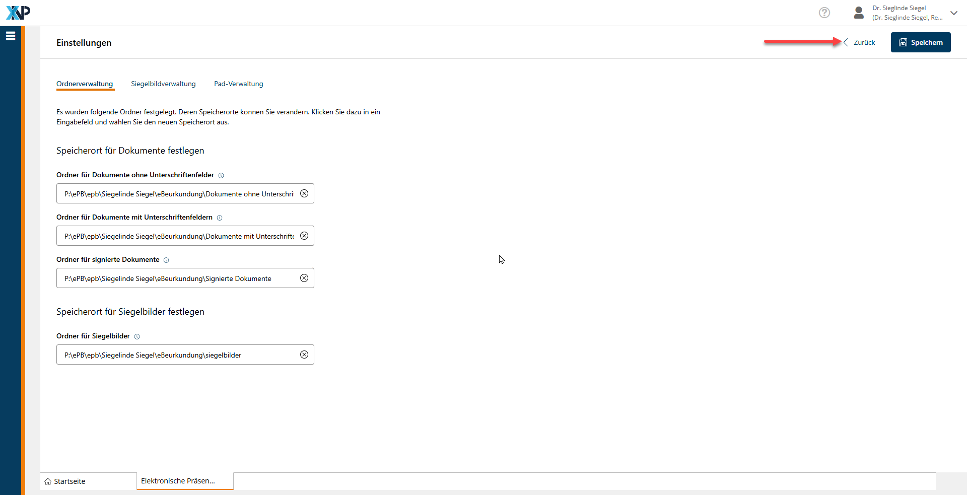 | Ordnerverwaltung | Ermöglicht es, Ordner bzw. Speicherorte für Dokumente und Siegelbilder festzulegen. |