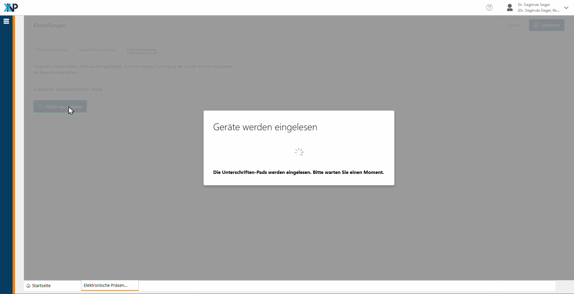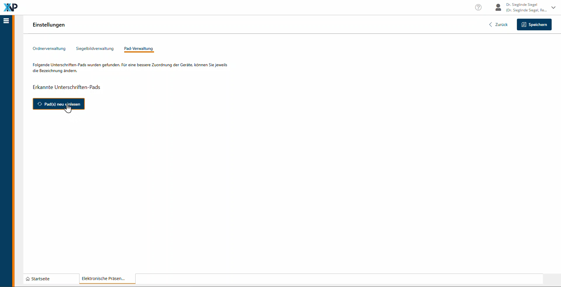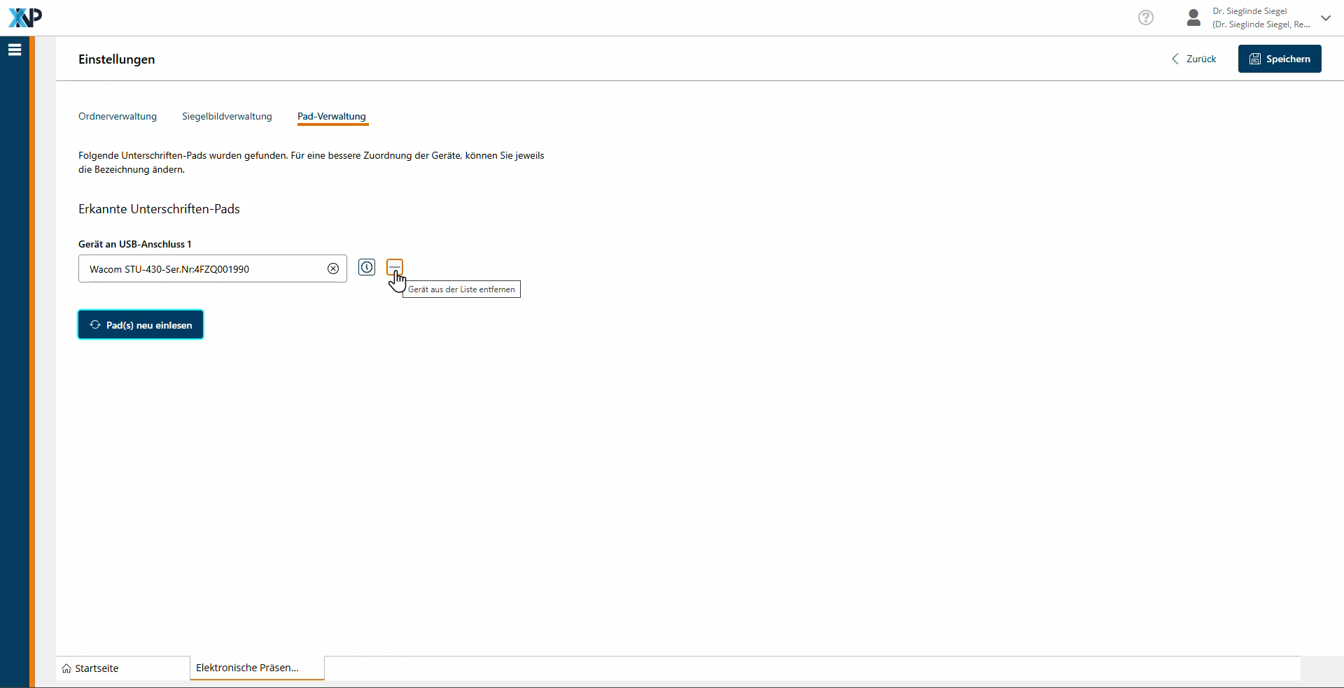 Über den Button Speichern übernehmen Sie das erkannte Unterschriften-Pad und beenden die Pad-Verwaltung.