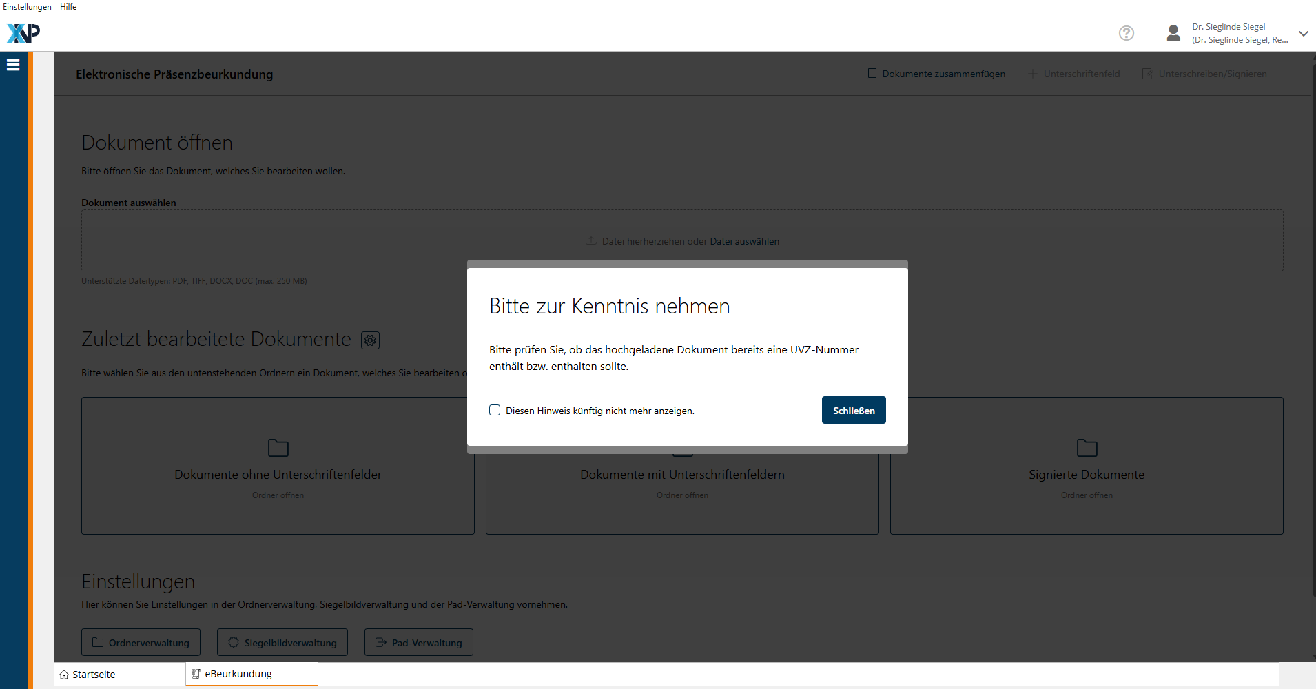 Bitte stellen Sie sicher, dass Sie nach Veröffentlichung des neuen Moduls eBeurkundung am 29. Dezember 2025 die XNP-Anwendung mindestens einmal neu gestartet haben.