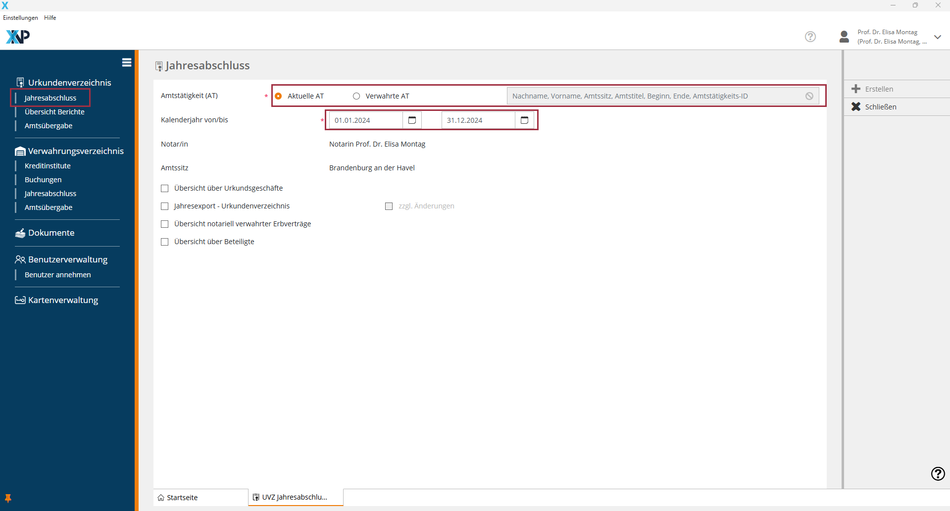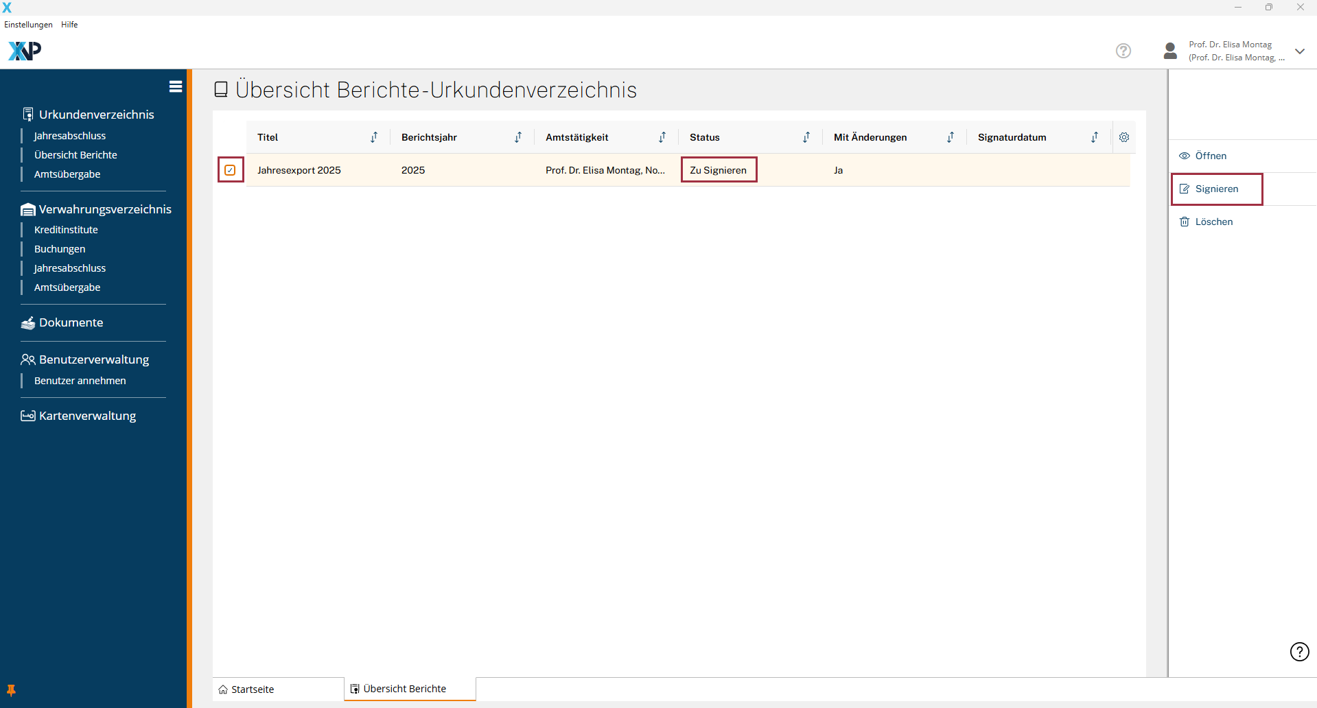 - Klicken Sie in der Navigationsleiste unter Urkundenverzeichnis auf Jahresabschluss.