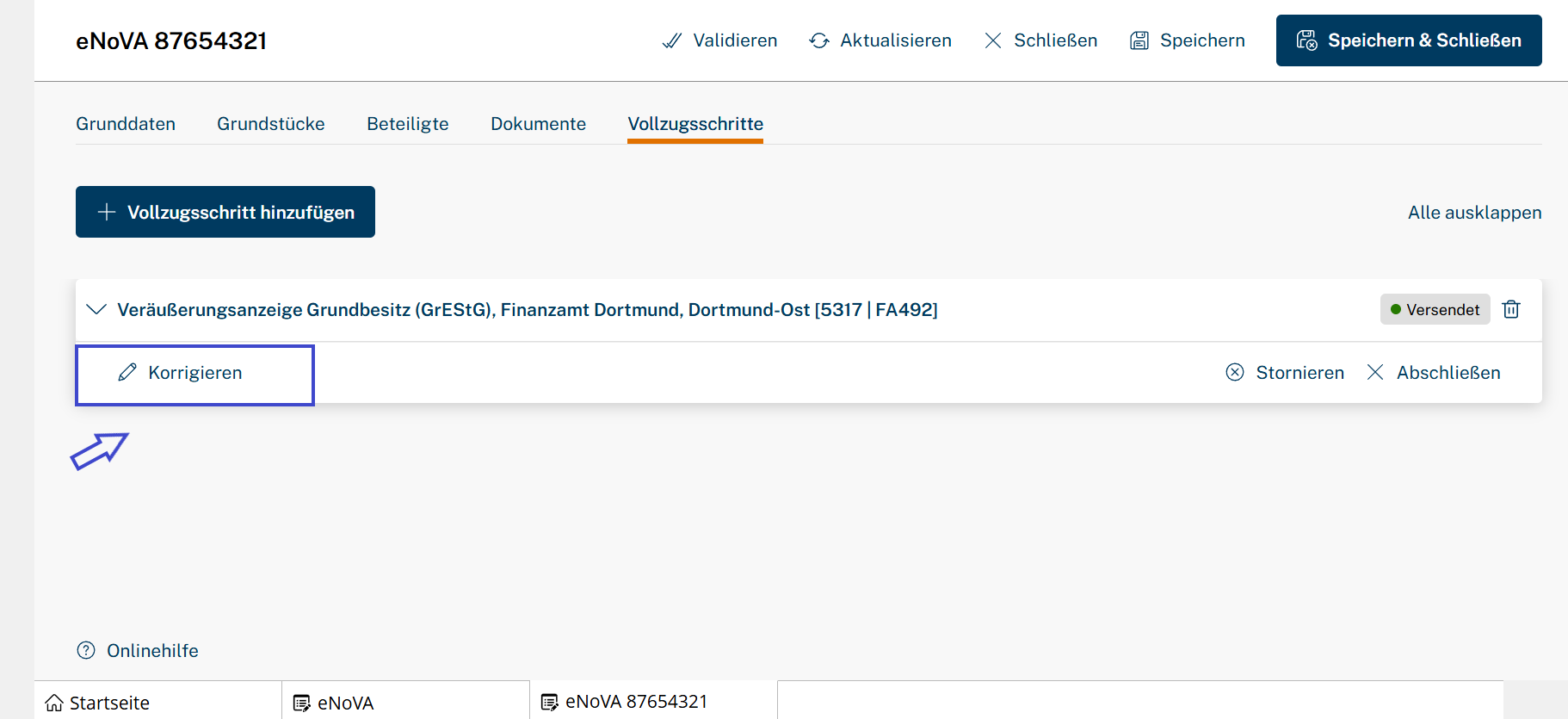 Korrigieren: Veräußerungsanzeige korrigieren