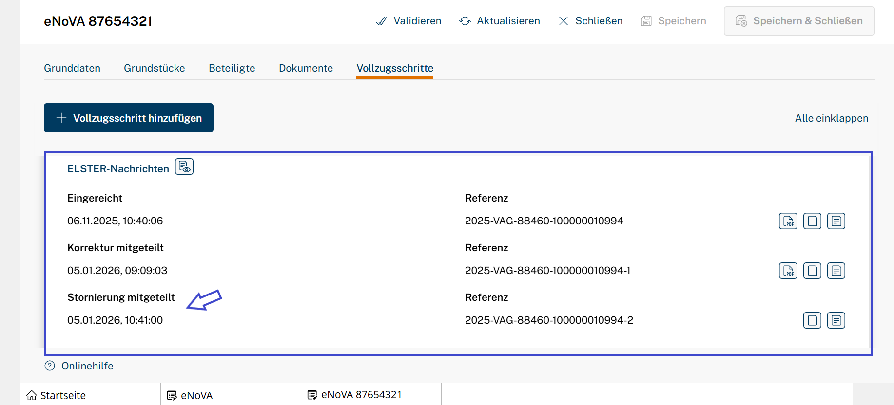 - Die Stornierungsmitteilung wird an ELSTER abgegeben.