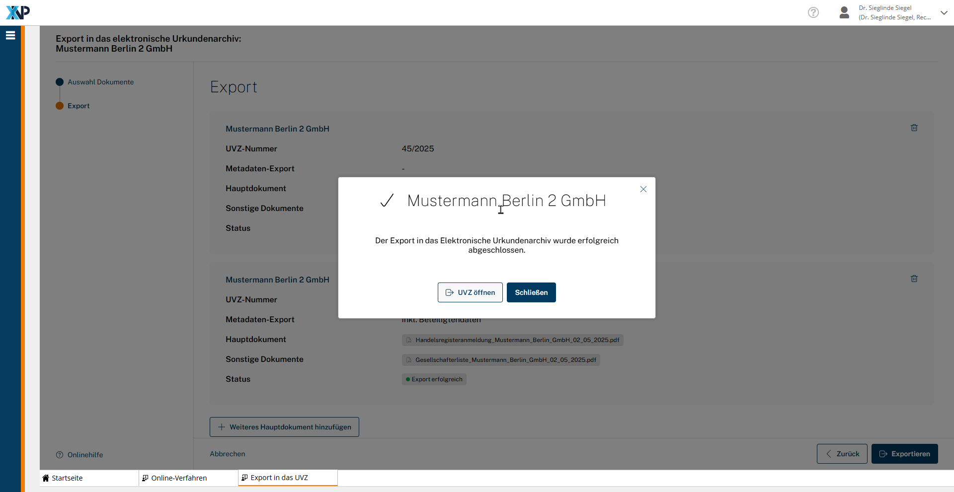 3. Paralleler UVZ-Export aus Notariatssoftware und aus den Online-Verfahren