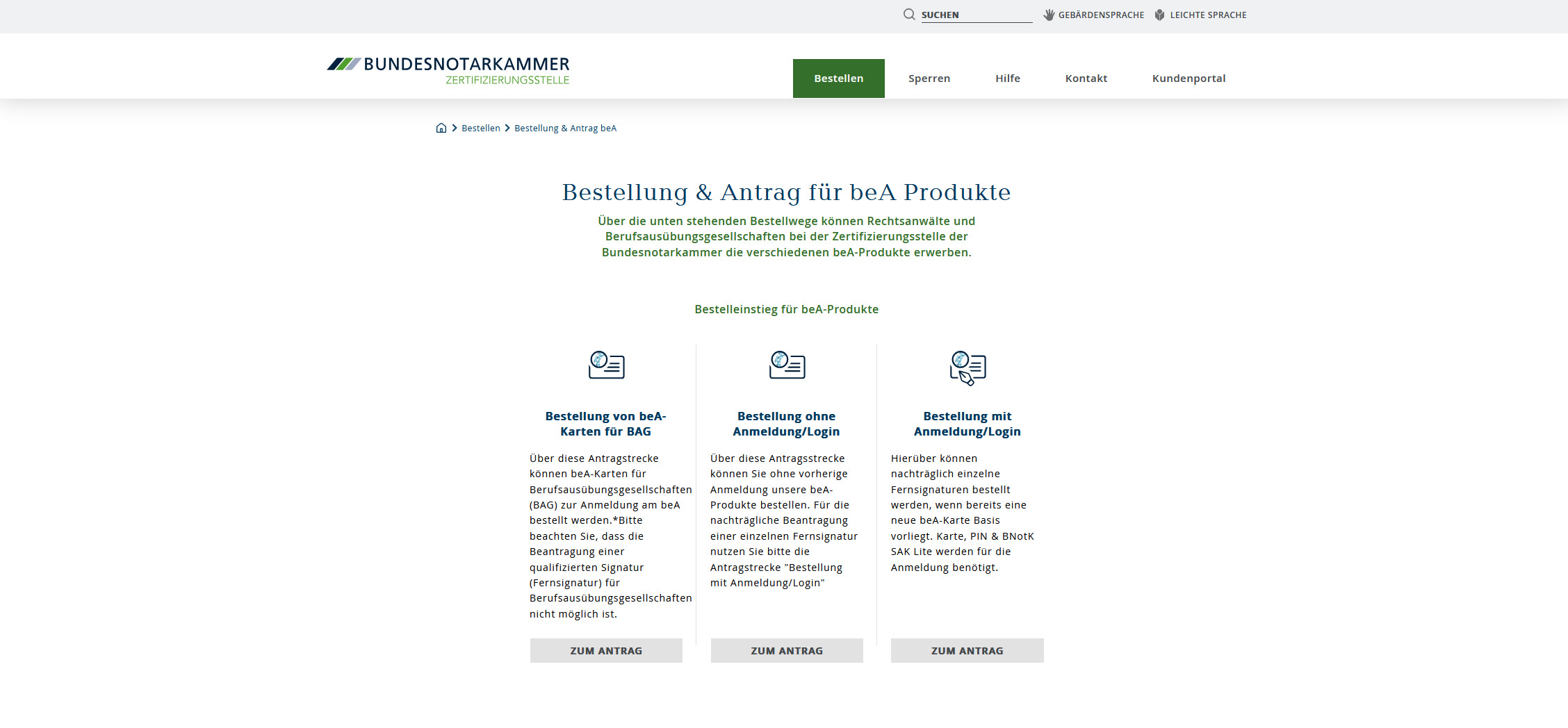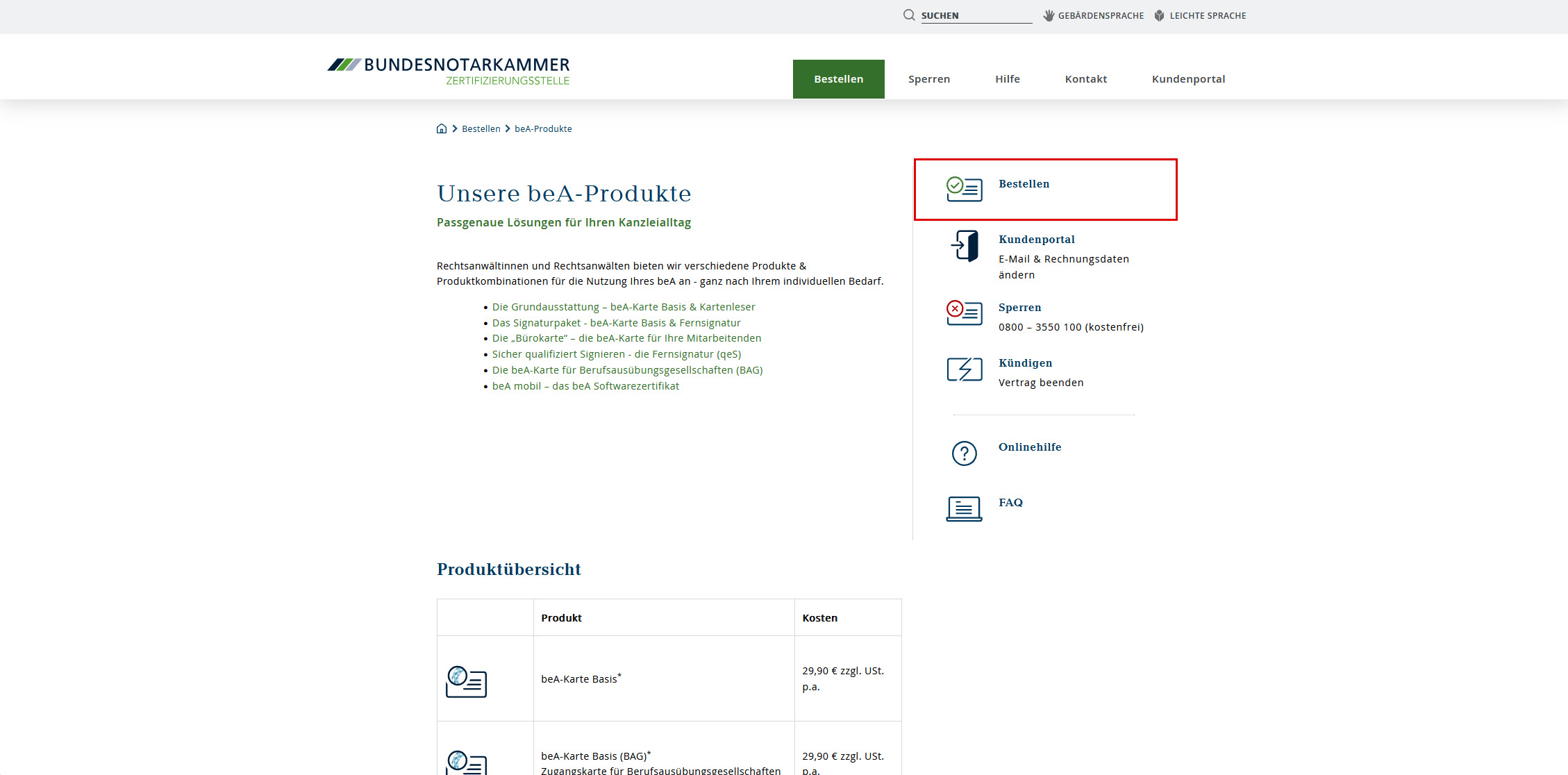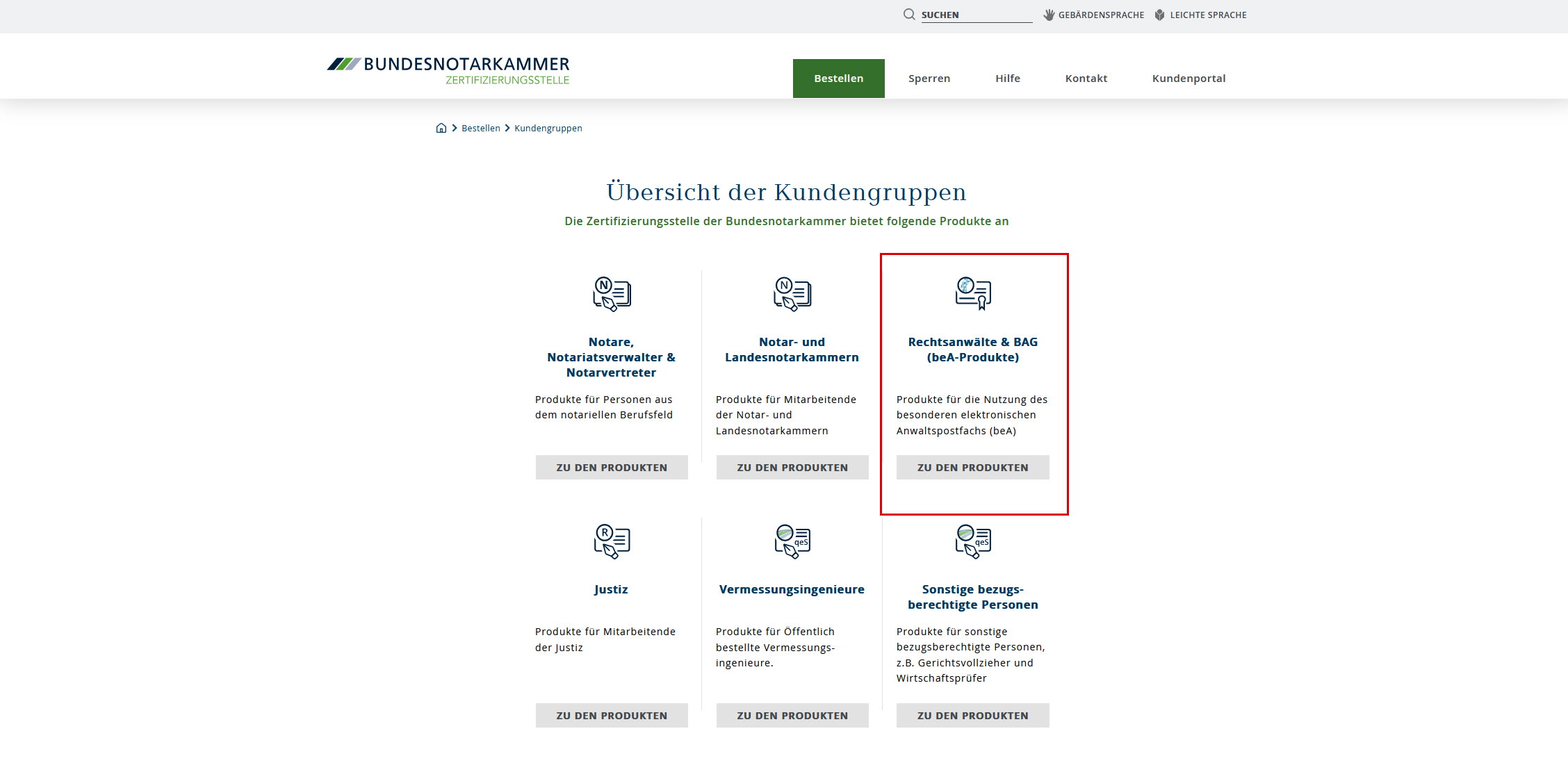 Ein direkter Einstieg ist zudem über diesen Link möglich: https://zertifizierungsstelle.bnotk.de/bestellen/beaprodukte