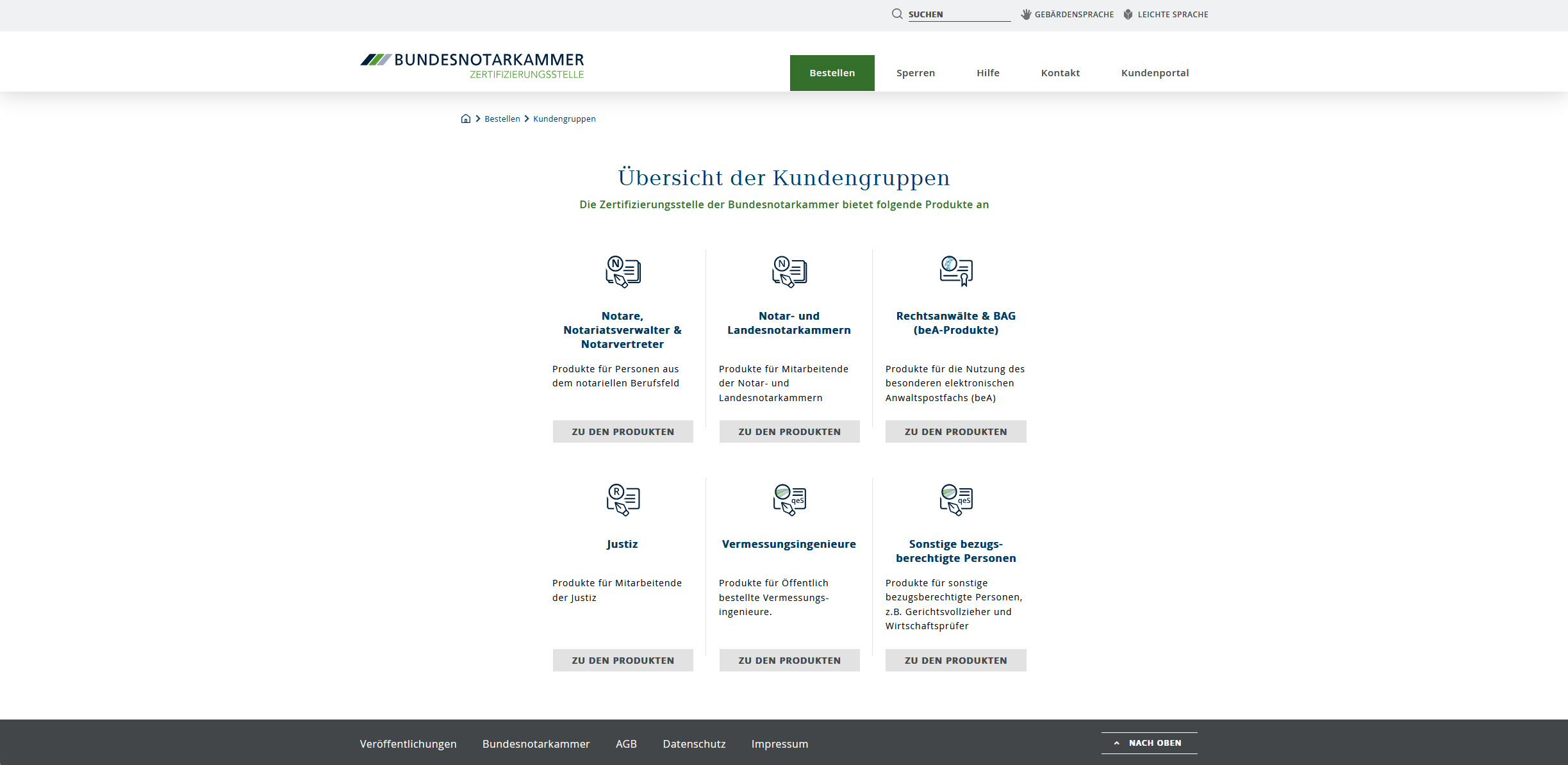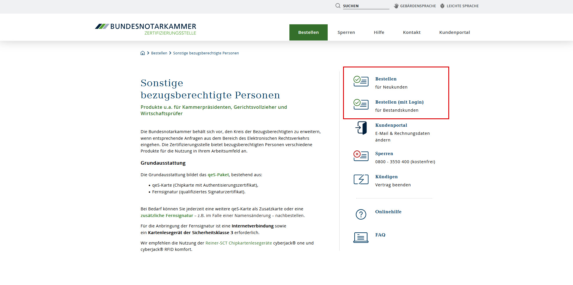 Der einfachste Weg zur Bestellung von Produkten der Zertifizierungsstelle der Bundesnotarkammer führt über die Website der Zertifizierungsstelle.