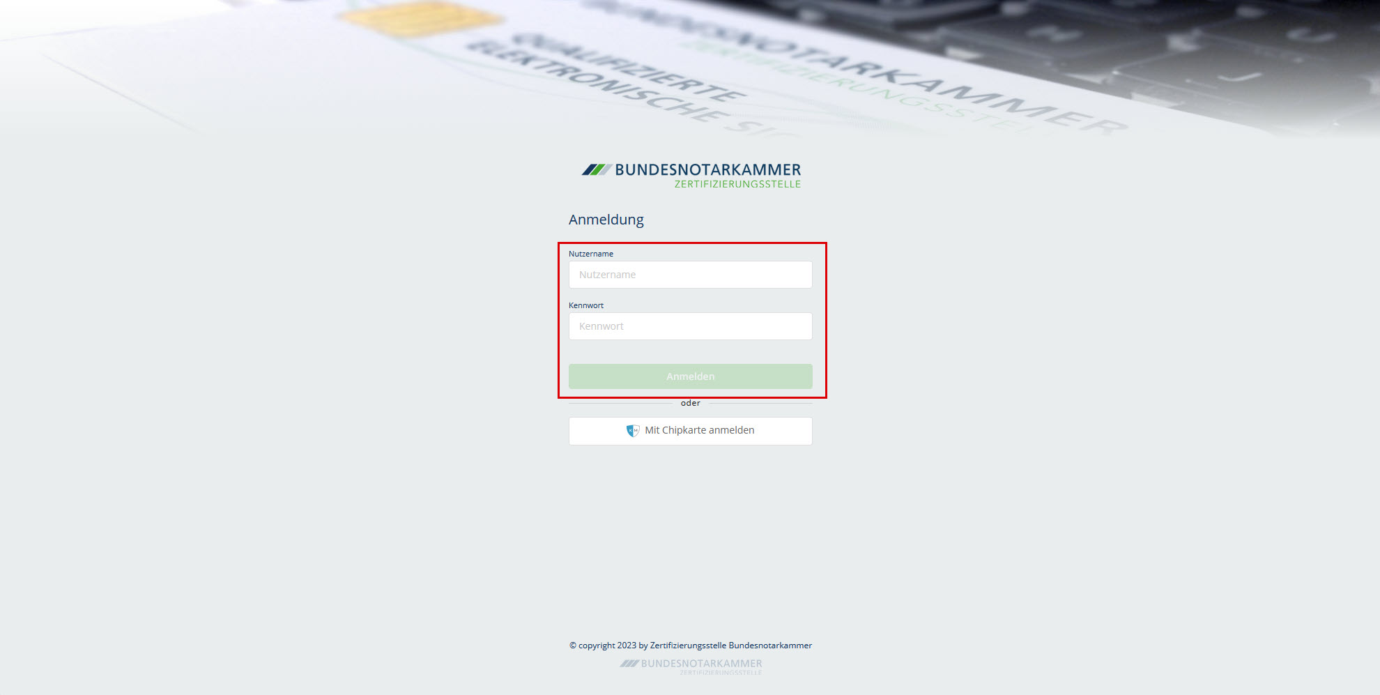 - Ihre Chipkarte der Bundesnotarkammer,