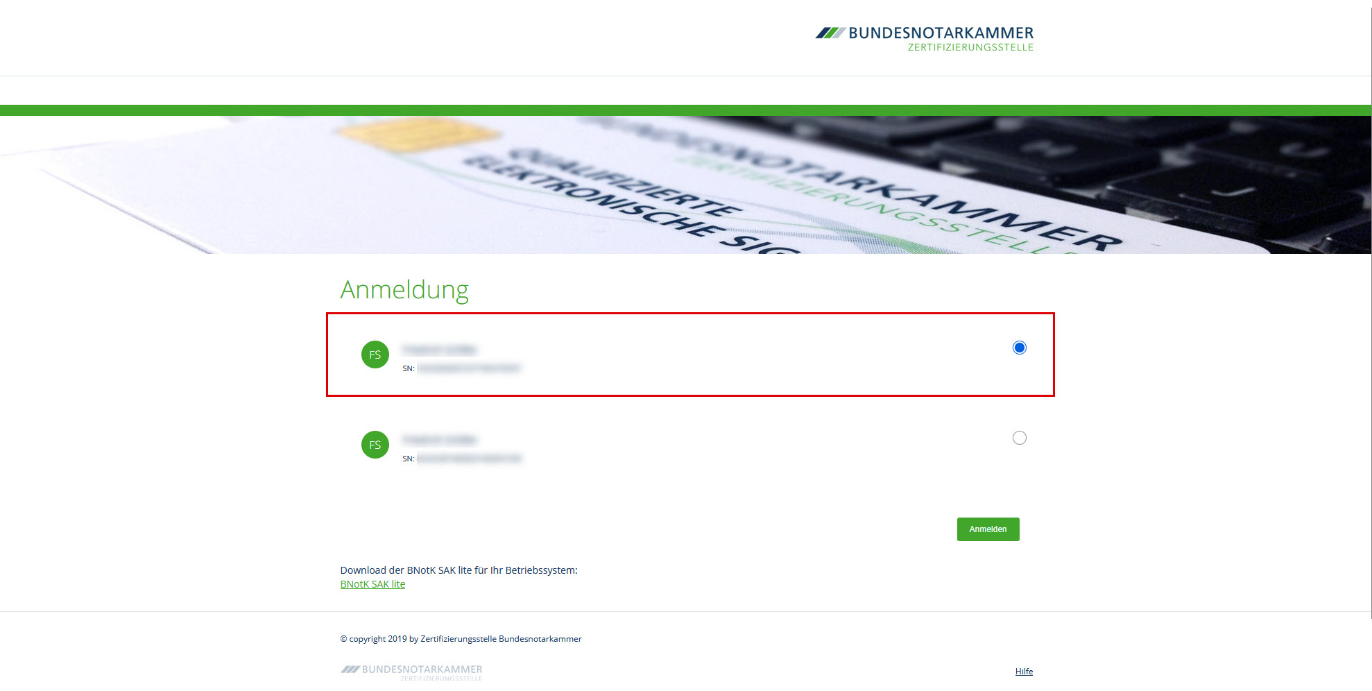 Andernfalls können Sie sich die Anwendung BNotK SAK lite hier herunterladen.