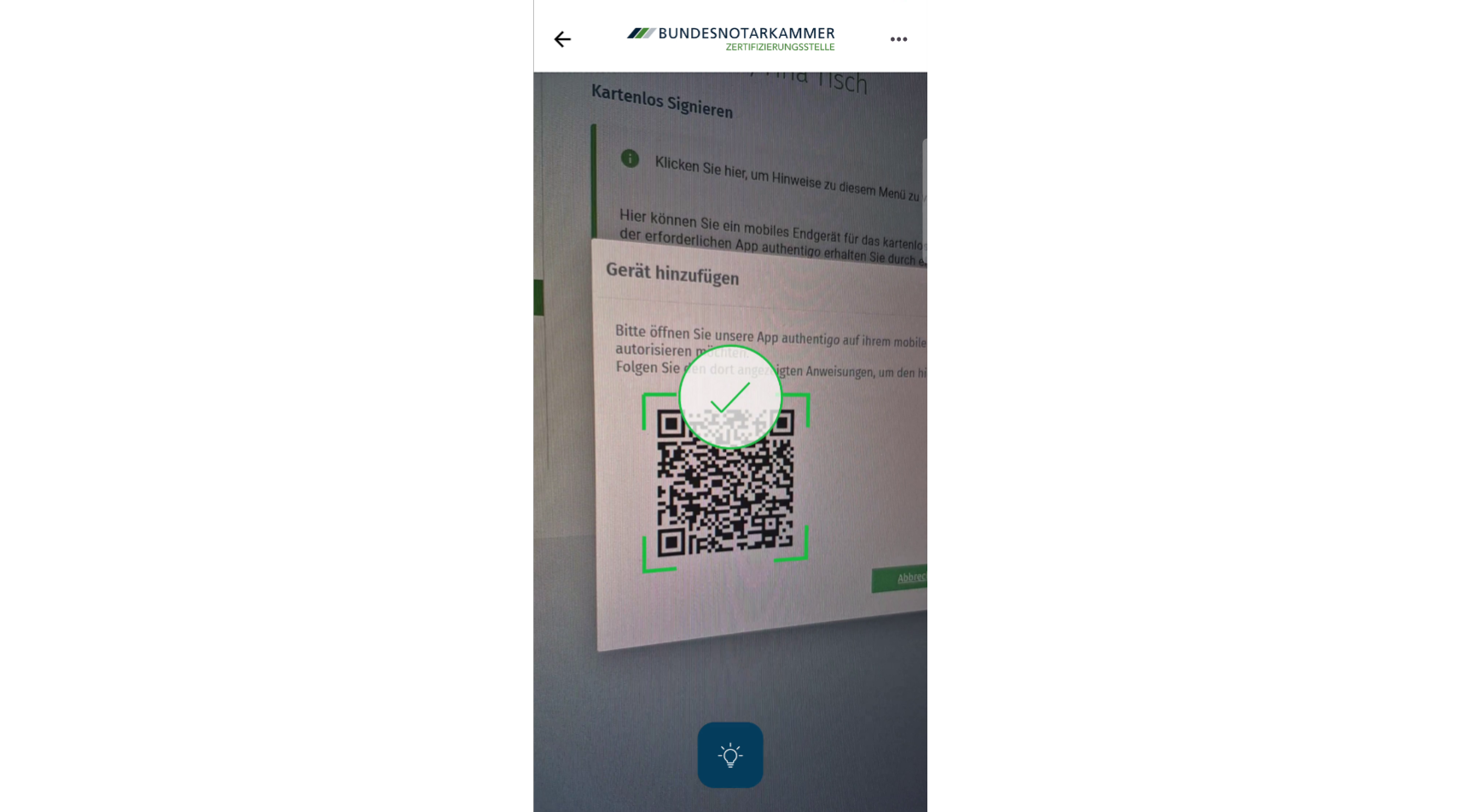 Scannen Sie den im Kundenportal angezeigten QR-Code, indem Sie in der Signatur-Freigabe App authentigo die Schaltfläche QR-Code scannen betätigen.